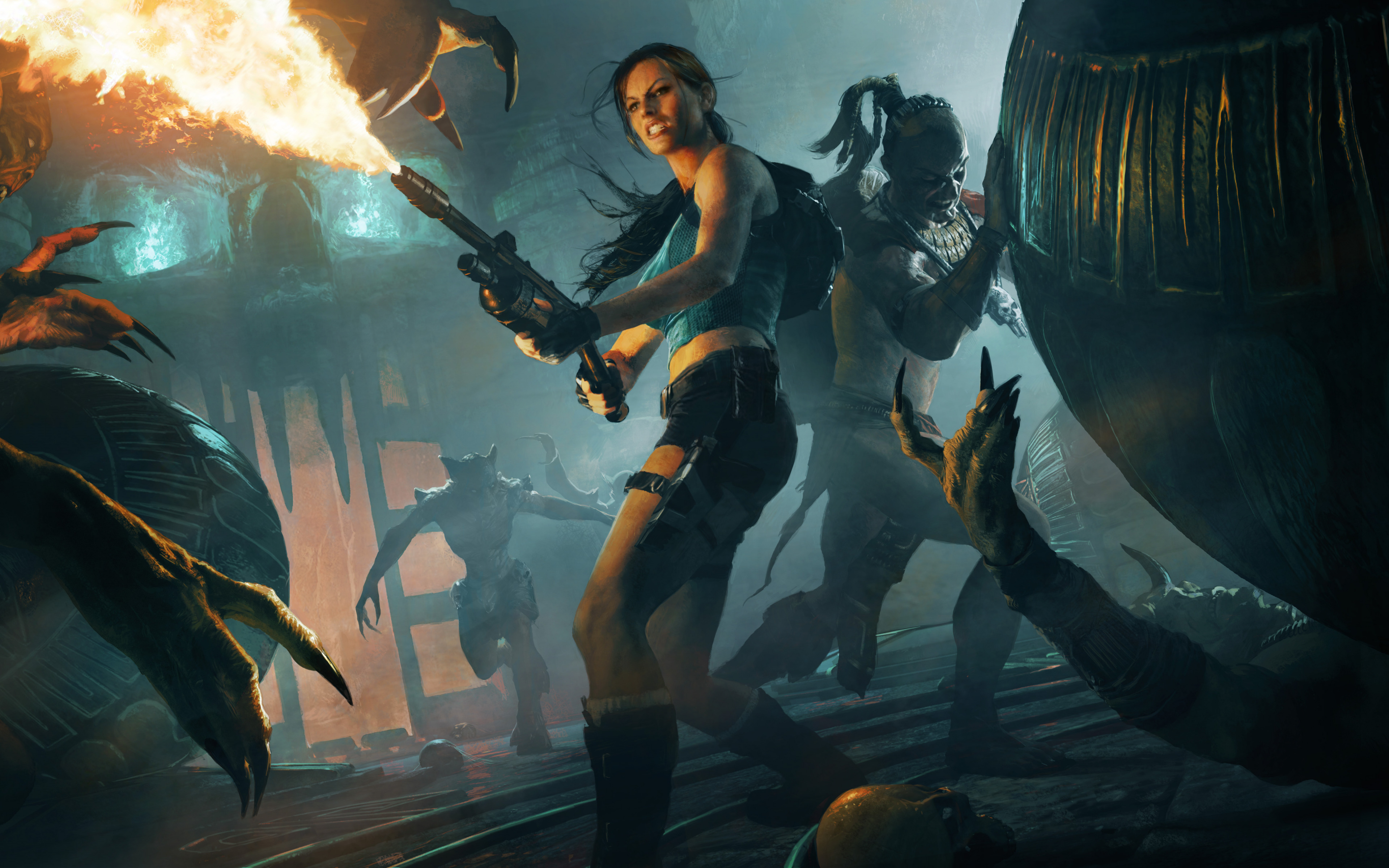 Скачать картинку 3840x2400 девушка, солдат, огонь, чудовища