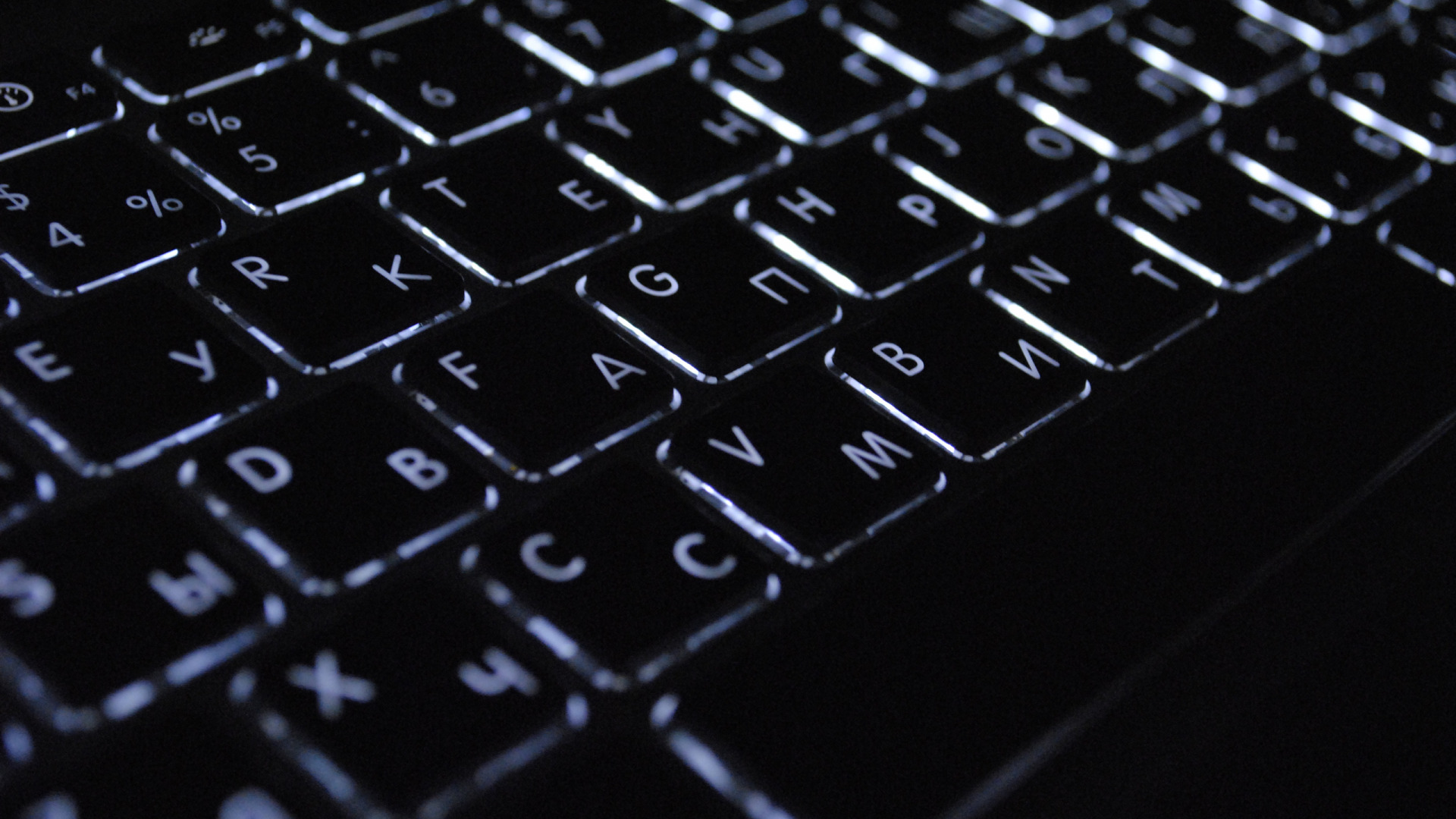 Скачать картинку 1920x1080 клавиатура, буквы, подсветка