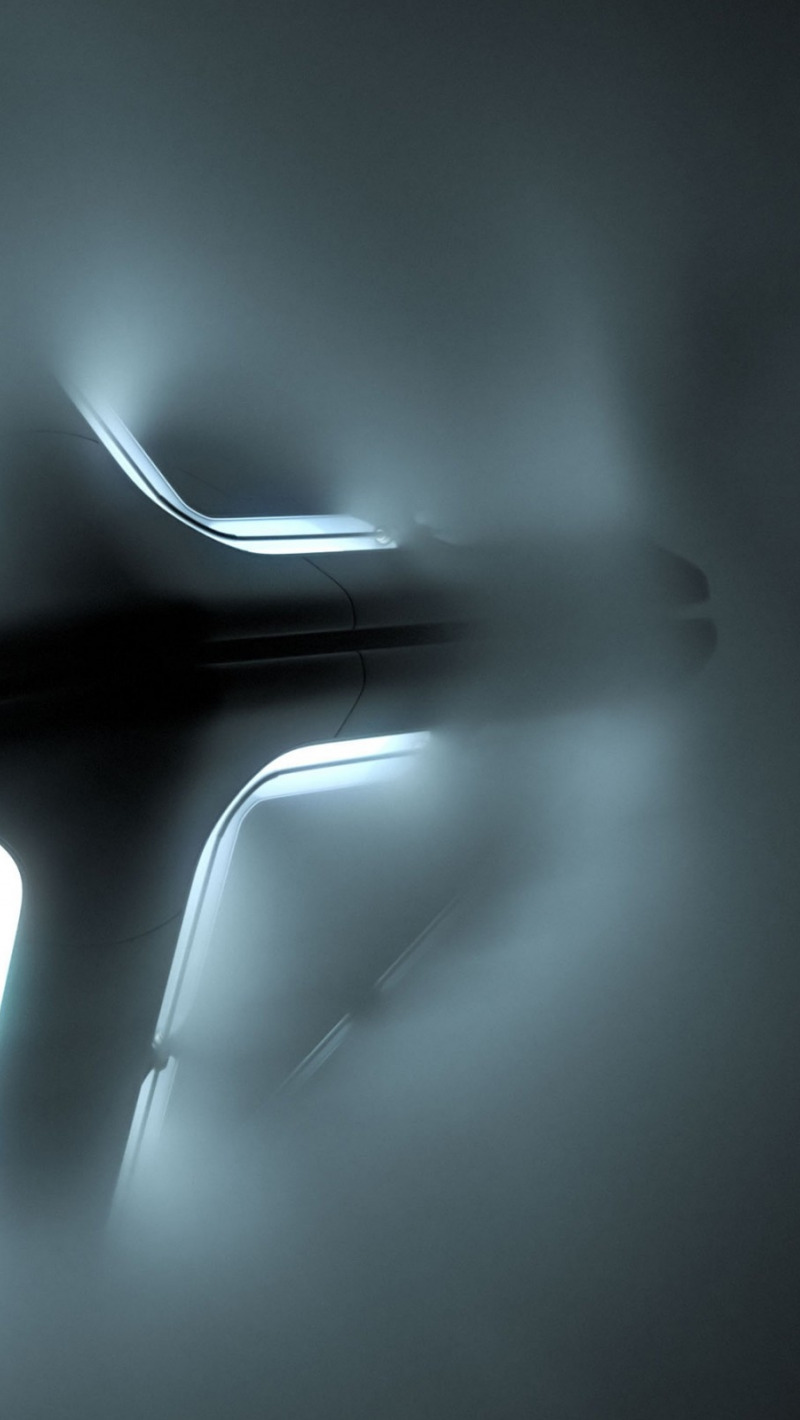 Скачать картинку 800x1420 корабль, туман, огни, свечение, нло