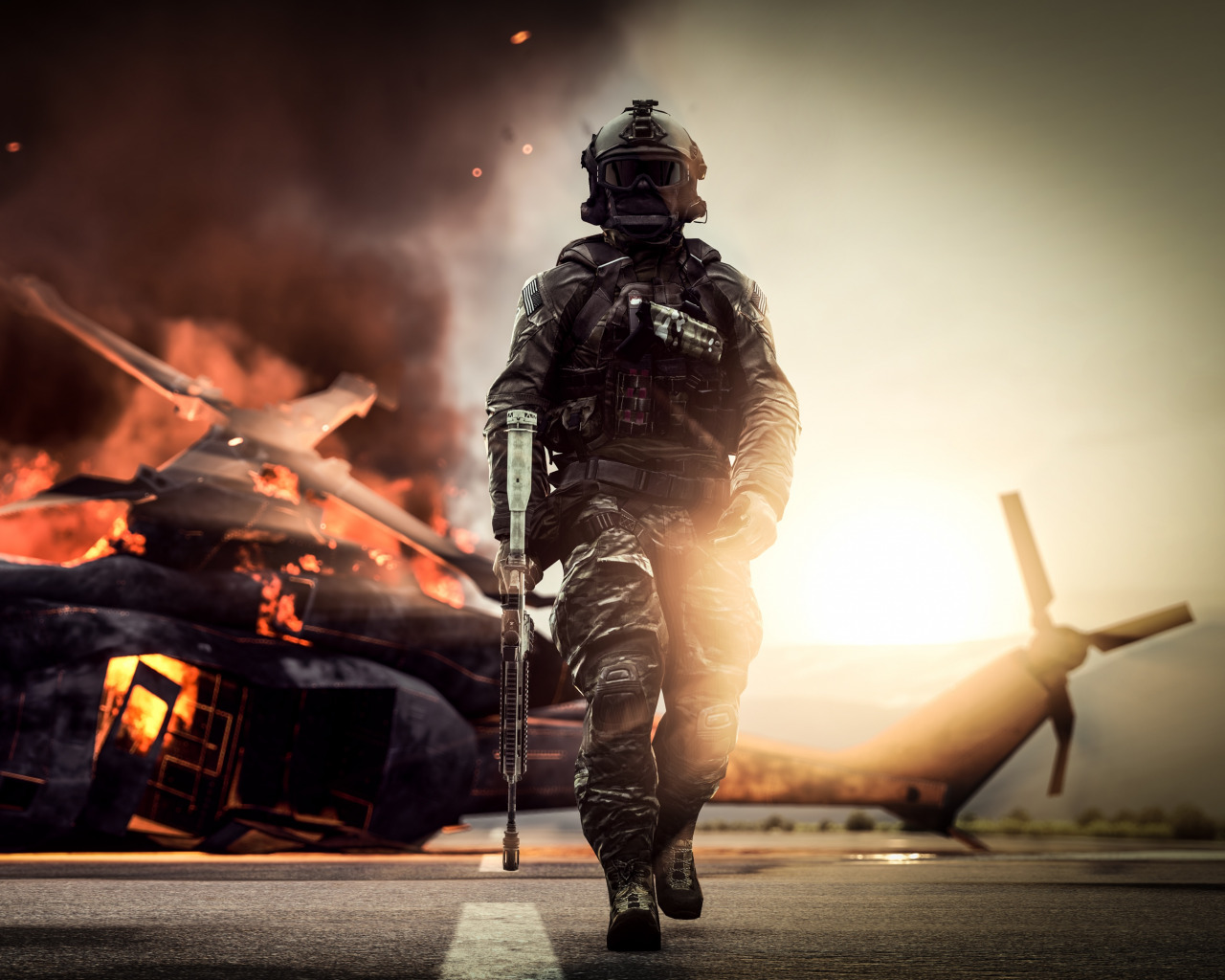 Скачать картинку 1280x1024 battlefield 4, игра, компьютерная, автомат, взрыв
