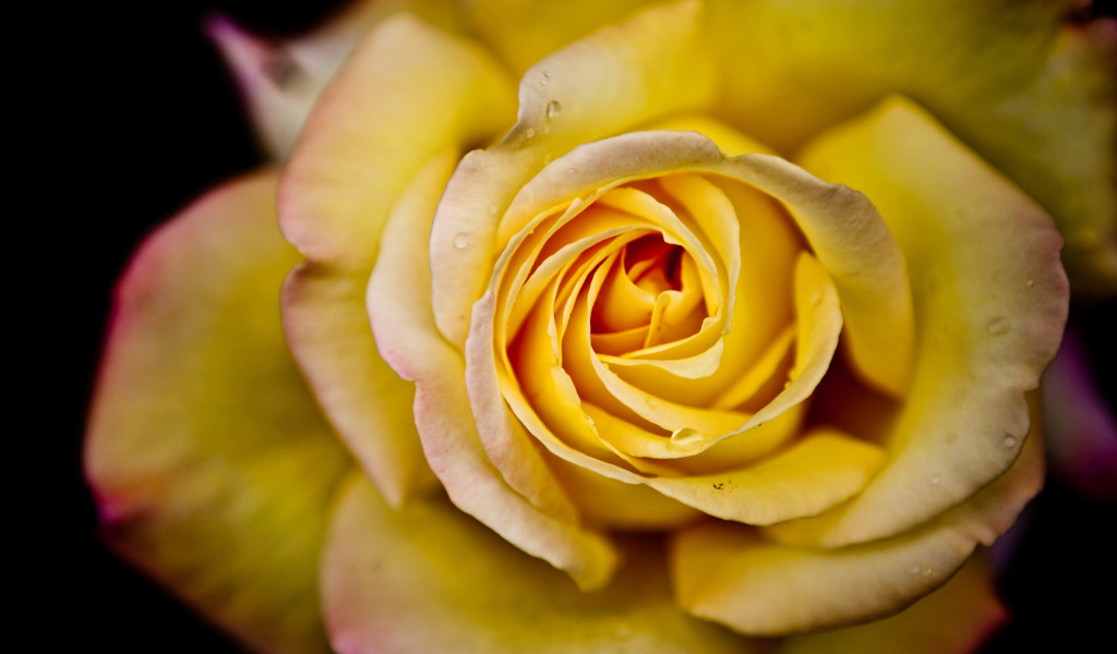 Скачать картинку 1024x600 роза, желтая, золотистая, капли