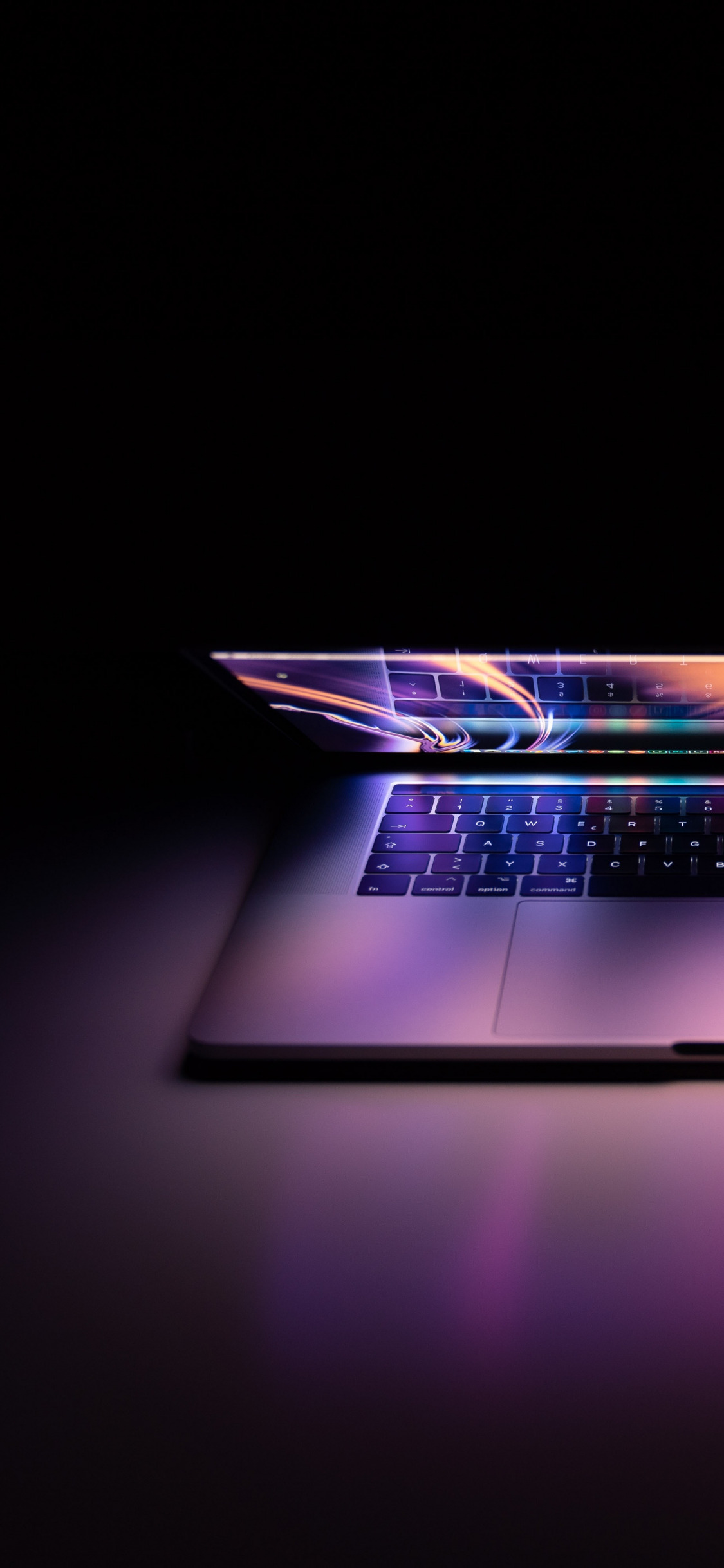 Скачать картинку 1125x2436 ноутбук, apple, macbook, свечение, цвета