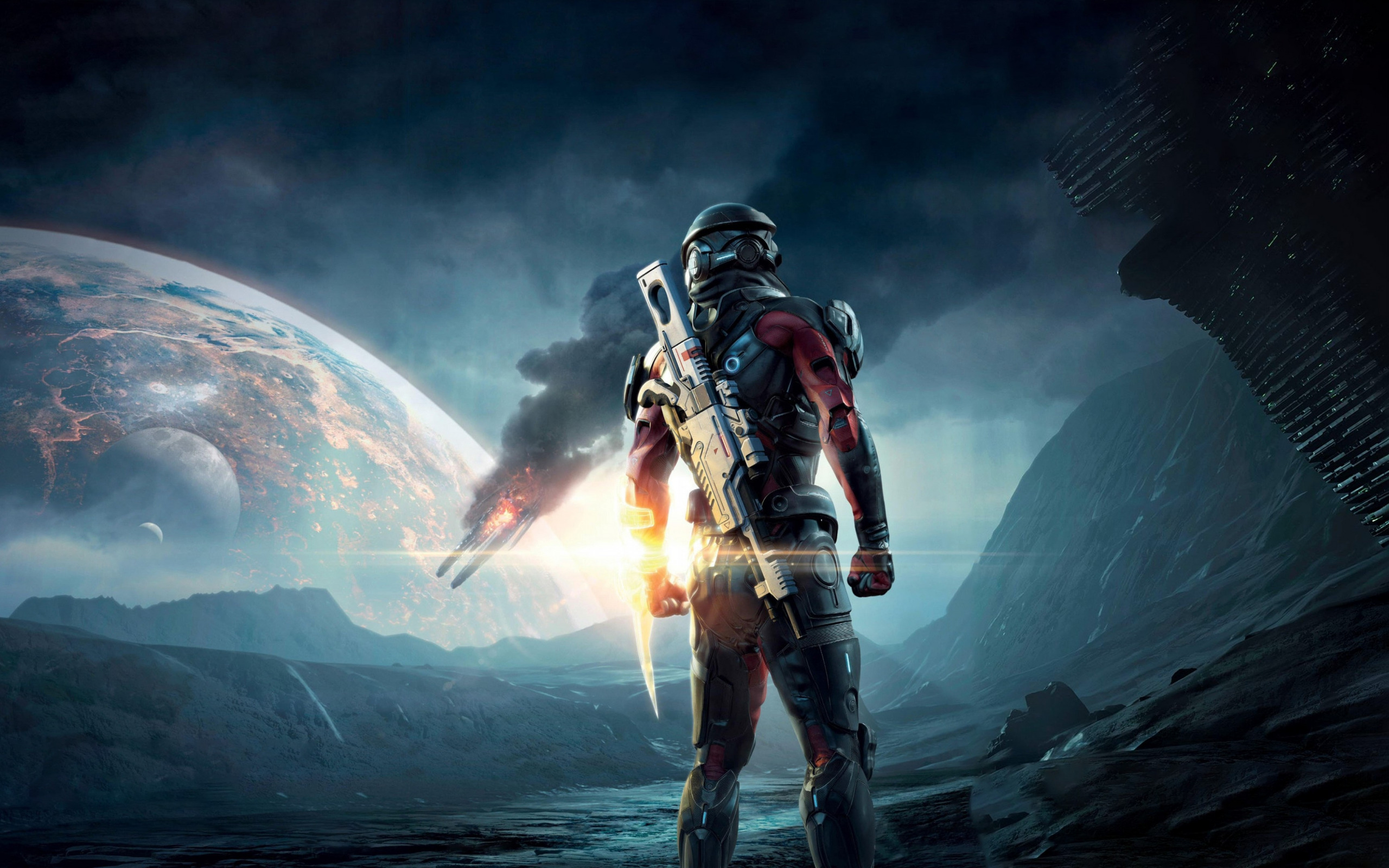 Скачать картинку 2560x1600 воин, планета, космос, война, крушение