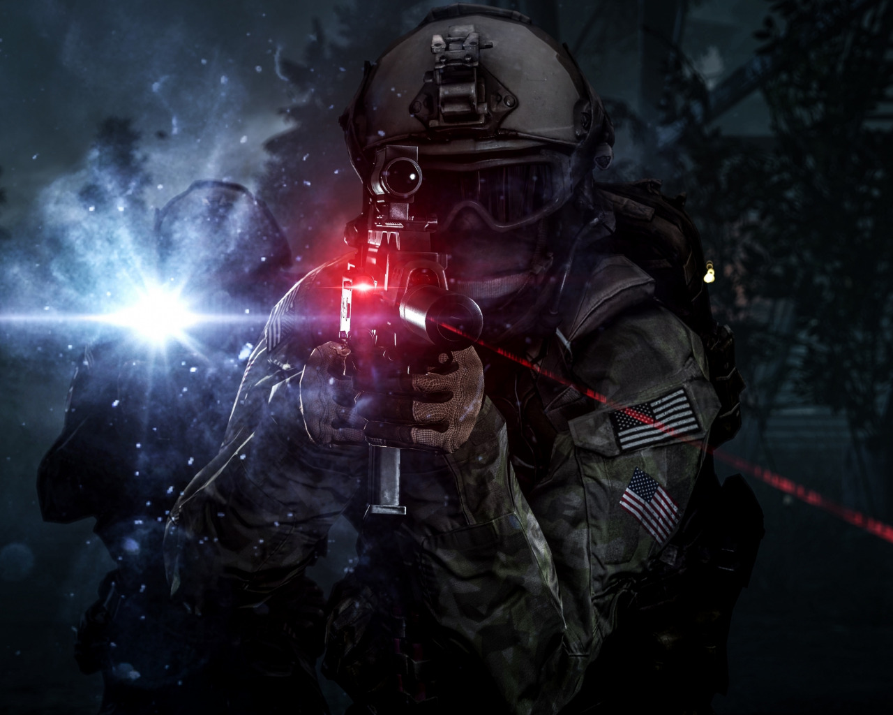 Скачать картинку 1280x1024 солдат, прицел, лазер, фонарь