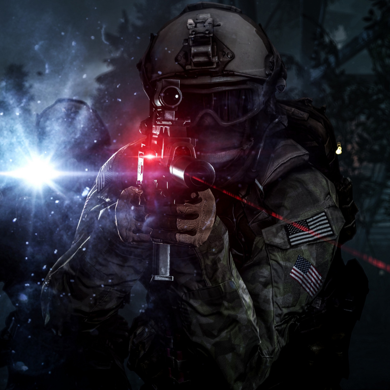 Скачать картинку 1280x1280 солдат, прицел, лазер, фонарь