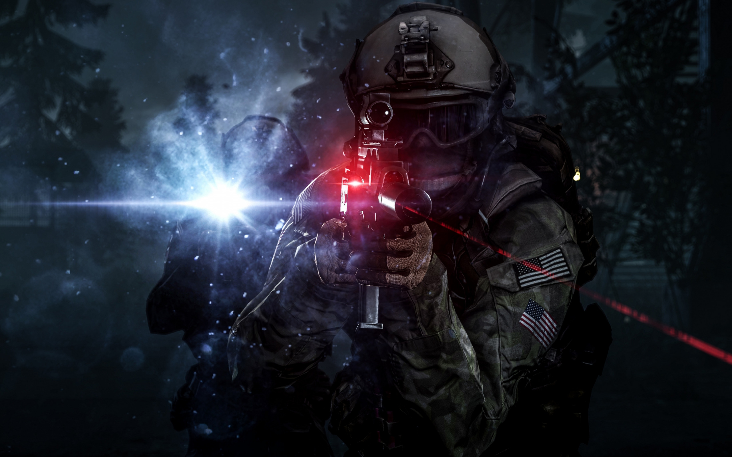 Скачать картинку 2560x1600 солдат, прицел, лазер, фонарь