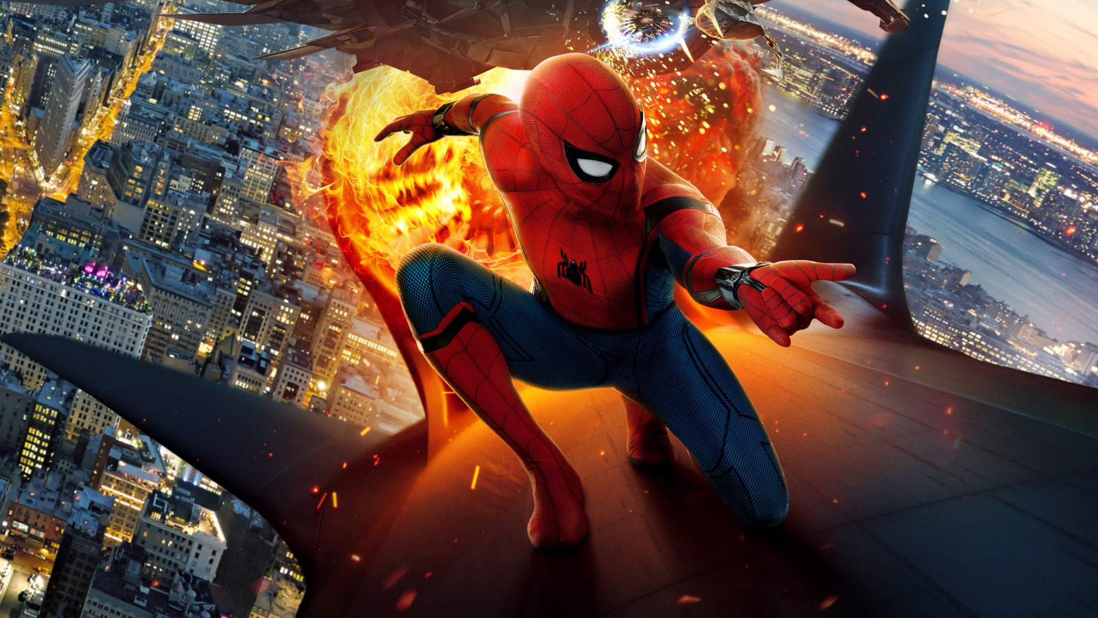 Скачать картинку 1600x900 человек-паук, герой, город