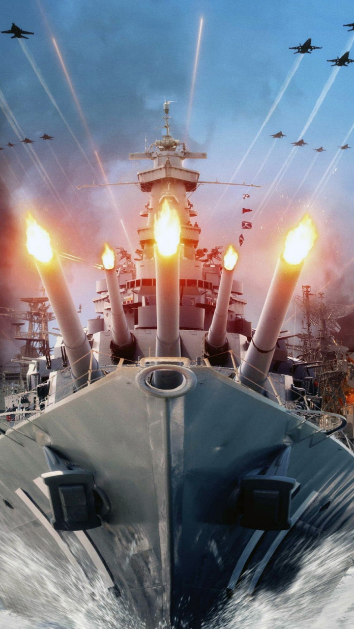 Скачать картинку 720x1280 корабли, выстрелы, огонь, взрывы