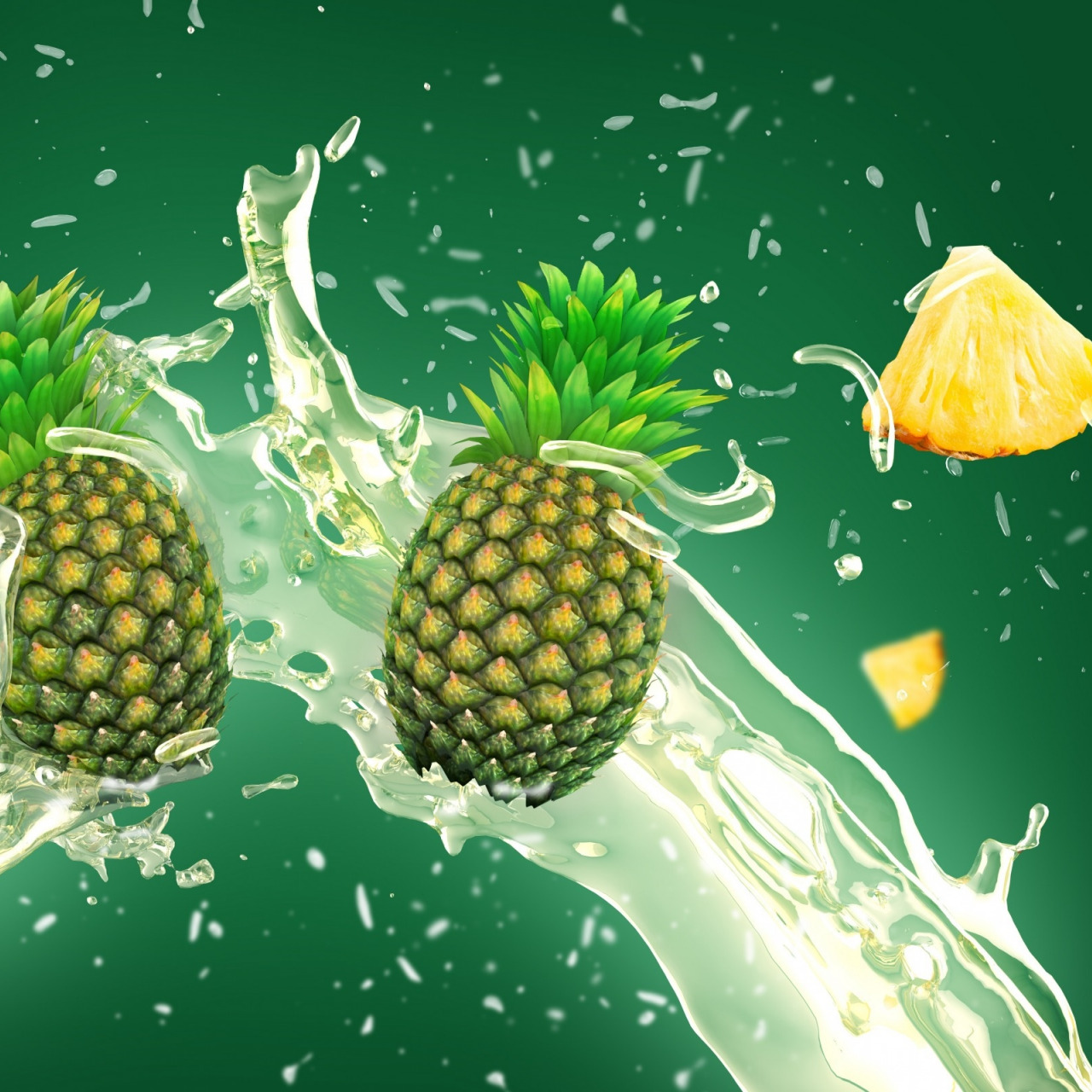 Скачать картинку 1280x1280 брызги, вода, ананас