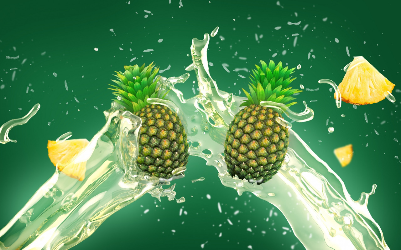 Скачать картинку 1280x800 брызги, вода, ананас