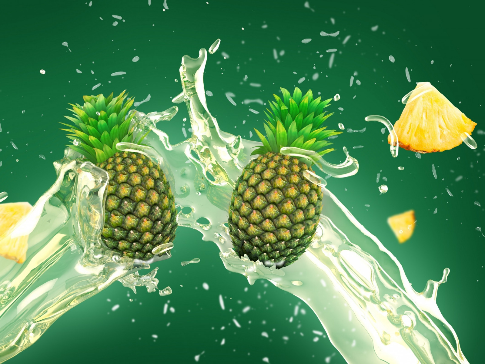 Скачать картинку 1600x1200 брызги, вода, ананас