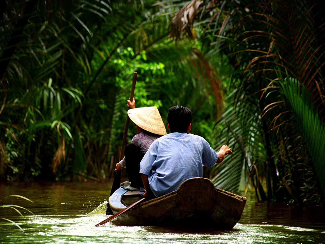 Скачать картинку 1280x960 дельта меконга, деревянная лодка, вьетнам, река