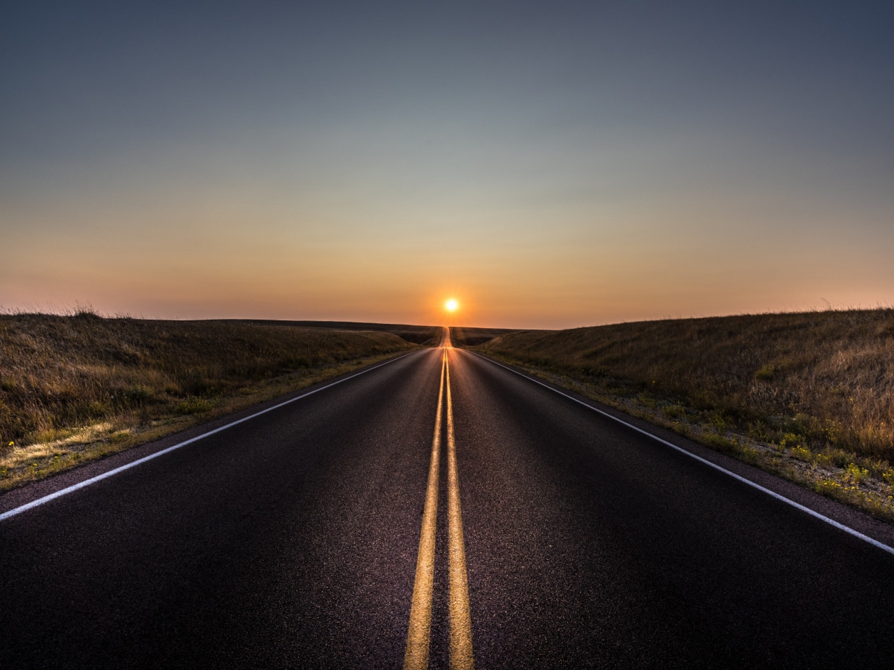 Скачать картинку 1280x960 дорога, полоса, рассвет